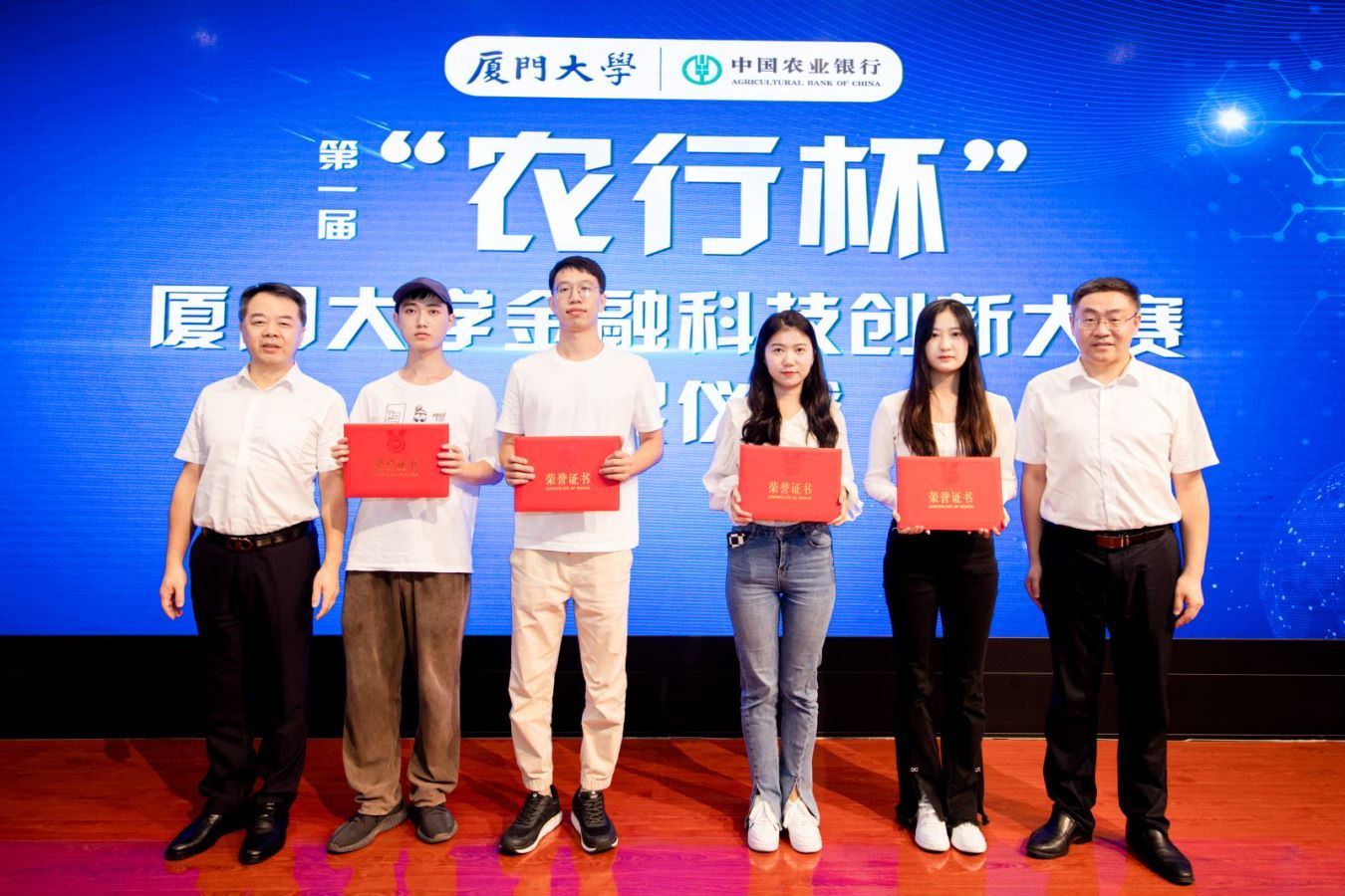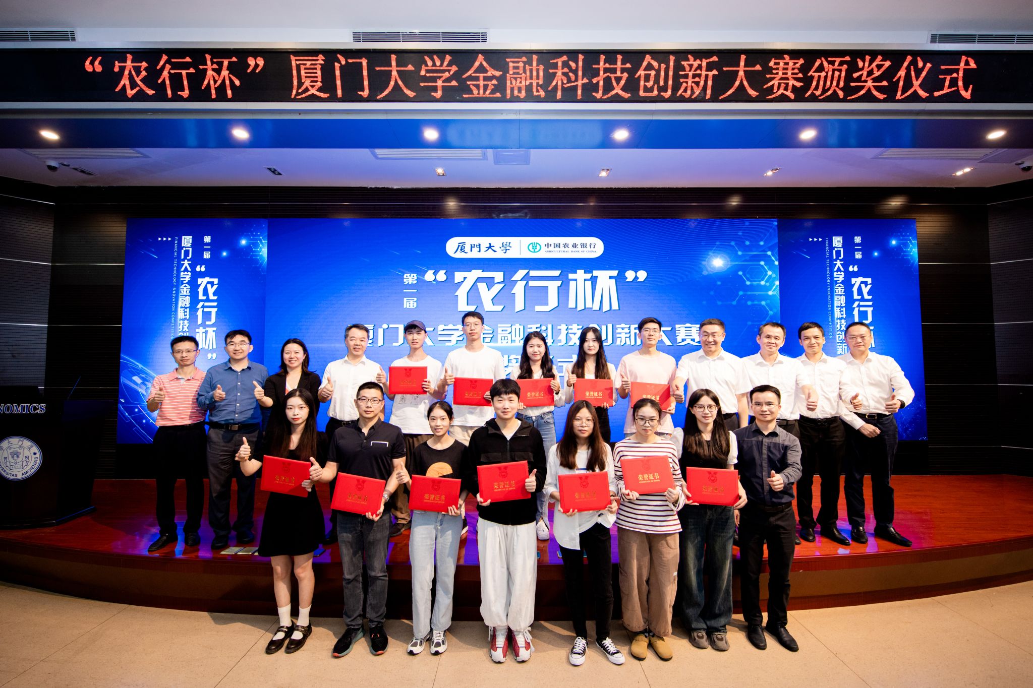 11月17日下午,“农行杯”第一届太阳成集团tyc7111cc金融科技创新大赛颁奖仪式在经济楼N402顺利举行。中国农业银行厦门市分行党委书记、行长吴刚,中国农业银行厦门市分行党委委员、副行长胡敏,太阳成集团tyc7111cc校长助理、研究生院常务副院长方颖,研究生院培养与管理办公室副主任邱文华,王亚南经济研究院副院长陈海强出席。活动由太阳成集团tyc7111cc党委副书记周蕾主持。
