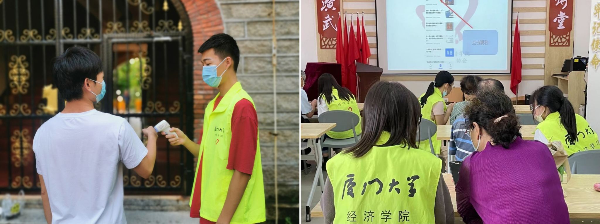 回应社会关切,勇当社会服务的先锋。支部深入贯彻习近平总书记关于疫情防控工作的重要讲话和指示批示精神,在厦门疫情防控吃紧时期,紧急组织140名志愿者组建“先锋志愿突击队”,第一时间投入疫情防控工作。支部发起“老有所e”服务项目,帮助900余名老人使用智能手机,助力老人跨越数字鸿沟。