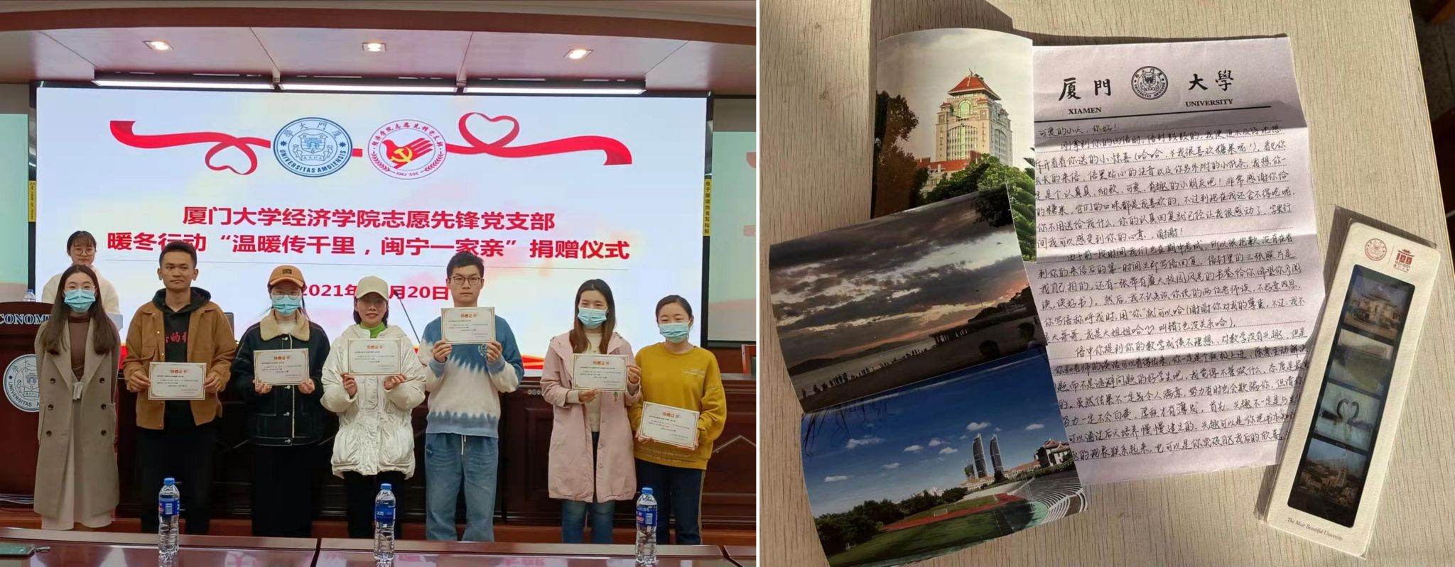 响应党的号召,勇当脱贫攻坚和乡村振兴的先锋。支部借助研支团与宁夏的纽带关系,于2010年创立特色品牌“暖冬行动”。十余年来,支部先后有20余名同志赴宁夏支教,并通过义卖、募捐等方式筹款筹物近20万元;近三年捐献图书4658册,为对口支援的2所宁夏中学建成图书角。支部组织开展“心信相印”活动,持续关注宁夏共建学校学生的身心发展,扶贫扶志。