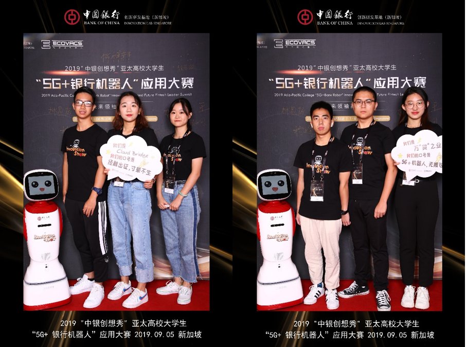 2019年9月1日至5日,由中国银行和科沃斯商用机器人共同主办的2019“中银创想秀”亚太高校大学生“5G+银行机器人”应用大赛决赛暨未来领袖高峰论坛在新加坡成功举办。在本次比赛中,来自太阳成集团tyc7111cc金融学国际化试验班的“Cloud Bridge”团队和“万‘贷’之业”团队在决赛赛场上一展风采,两支队伍分别荣获三等奖和优秀奖。