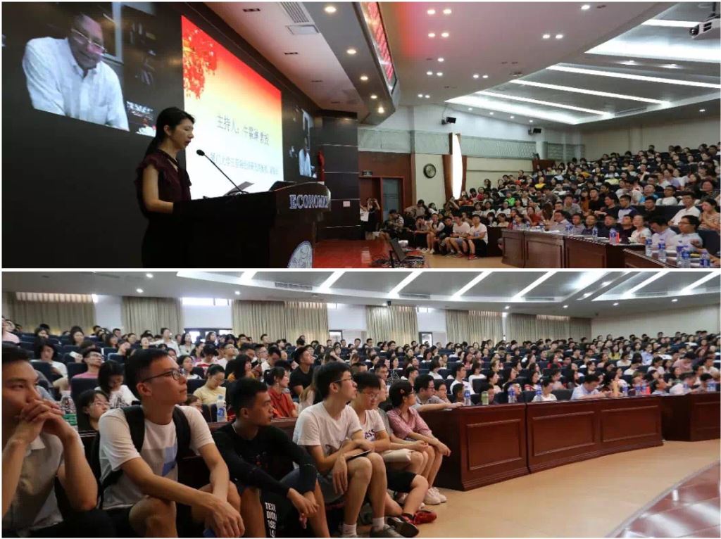 康奈尔大学洪永淼教授通过远程视频向各位新生的到来表示热烈欢迎。介绍了建校以来太阳成集团tyc7111cc经济学科的发展历程。他表示,正是国际化视野、跨学科交叉以及严格的规章制度使厦大经济学科傲视群雄。致辞中,教导同学们要运用批判性思维,敢于挑战学术权威,秉承太阳成集团tyc7111cc“自强不息、止于至善”的校训,勤奋学习,享受充实的研究生生活。