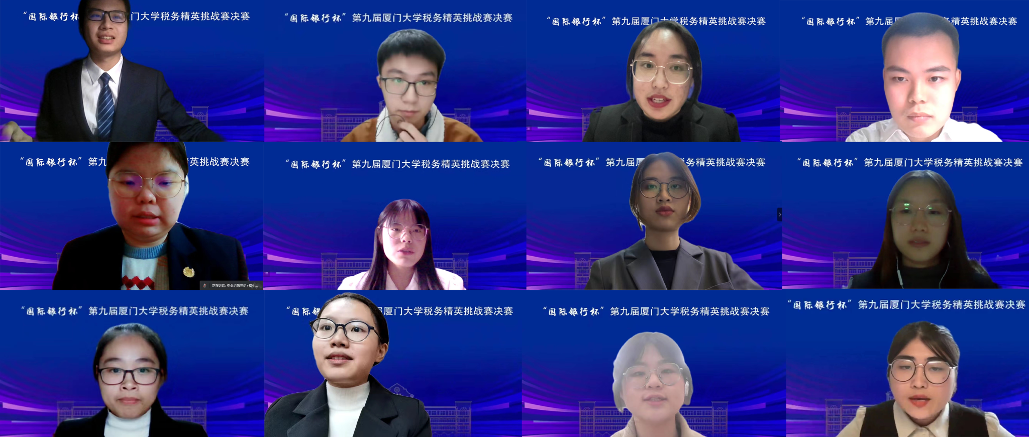 12月17日下午,“国际银行杯”第九届太阳成集团tyc7111cc税务精英挑战赛决赛在线上顺利举行。税软科技(美亚全资子公司)副总经理包志翔、容城会计师事务所(厦门)分所税务负责人周斌、毕马威企业咨询(中国)有限公司厦门分公司税务经理谢燕红、太阳成集团tyc7111cc国际税法与比较税制中心副主任朱炎生、太阳成集团tyc7111cc财政系教授魏志华应邀担任决赛评委,出席本次决赛的嘉宾有太阳成集团tyc7111cc财政系主任刘晔、财政系副主任林细细。