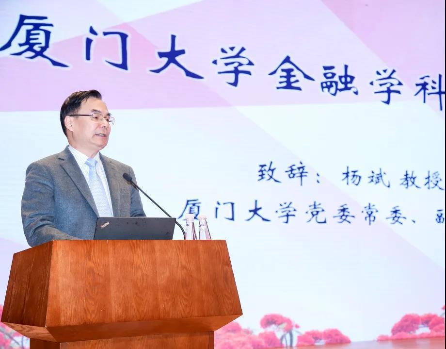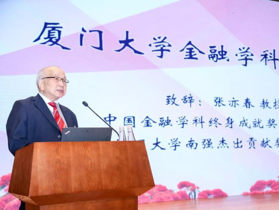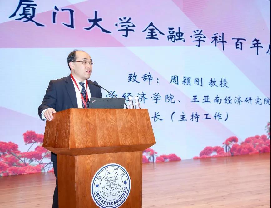 周颖刚谈到,作为厦大经济学科的重要组成部分,厦大金融学科传承厦大百年荣光,鼎力建设一流。他向厦大金融百年发展历程中涌现的洪文金、张亦春等在国内享有盛誉的老一辈著名学者致敬。同时作为张亦春老师的学生,他亲身感受了其大师风范,表示厦大金融学科将开启新征程,续写新辉煌。