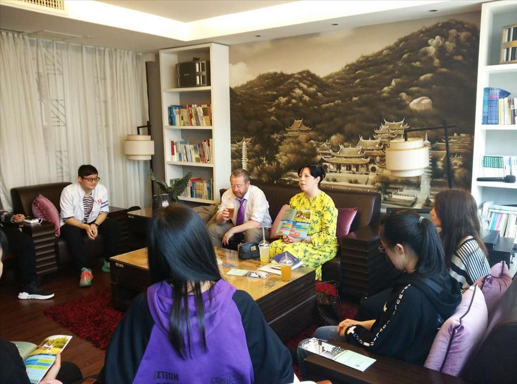 来访期间,Brian Fynes一行还与即将赴爱尔兰都柏林大学学习的1+3海外留学本科班在读生亲切交谈。Aoife Doherty女士首先热情询问了每位学生的个人情况及留学初衷,随后她就爱尔兰天气,都柏林大学的校园环境,商学院课程学习,工作及实习机会,社团活动等学生们普遍感兴趣的话题进行详细介绍,学生们也踊跃向各位来宾进行提问。见面会在轻松友好的氛围中结束。
