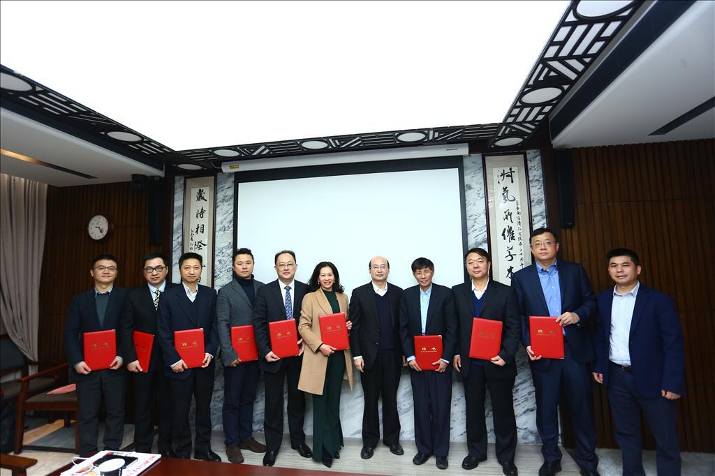 随后,会议进行了校外导师敦聘环节。本次校外导师的正式聘任是国际商务专硕项目的启动以来的第二次聘任,共敦聘了16名校外导师,包括部分首次聘任导师的续聘以及本次新聘的导师。在国际经济与贸易系副主任林季红教授的主持下,朱孟楠教授与彭水军教授向校外导师一一颁授聘书,并合影留念。