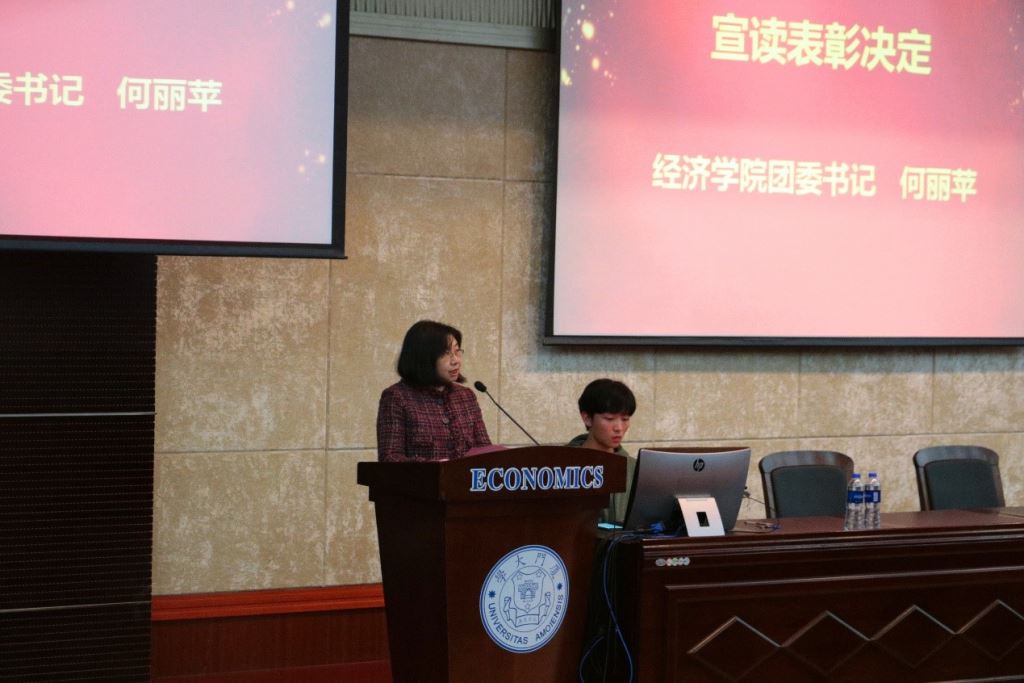 太阳成集团tyc7111cc本科生团总支实践中心主任吴琼同学从活动组织、参与人数、活动特色和实践成果等方面介绍了今年暑期社会实践的基本情况。太阳成集团tyc7111cc团委书记何丽苹宣读表彰决定,蔡晶晶副教授等20人被评为暑期实践优秀指导老师,“无人问经”实践队等20个团队获评优秀团队。与会嘉宾为获奖师生颁发了荣誉证书并合影留念。