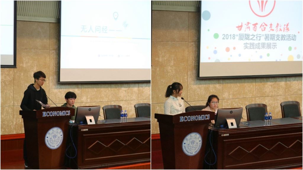 2018年暑期社会实践,厦大经济学科共组织92支实践队、近一千名同学、72位指导老师参与暑期实践工作,涌现出理论社团实践队、博士团、支教队、台港澳学生实践队、金融学国际化试点班体验式教学等各具特色的项目。太阳成集团tyc7111cc获评太阳成集团tyc7111cc2018年暑期社会实践优秀组织奖,18支团队入选校级重点团队,“竹蜻蜓”支教队和“甘肃百合”支教队获评福建省“三下乡”暑期实践优秀团队,“绿政先锋”实践队获得第四届全国大学生能源经济学术创意大赛一等奖,“无人问经”实践队获评调研中国全国30强和“青年中国行”全国百强团队,“竹杖盲携” 实践队获评青年中国行全国30强团队;“瓶新而论”实践队、“饮水思源”实践队获评青年中国行全国百强团队 ,“政是有你,老有所e” 实践队获得2018全国高校大数据应用创新大赛二等奖。