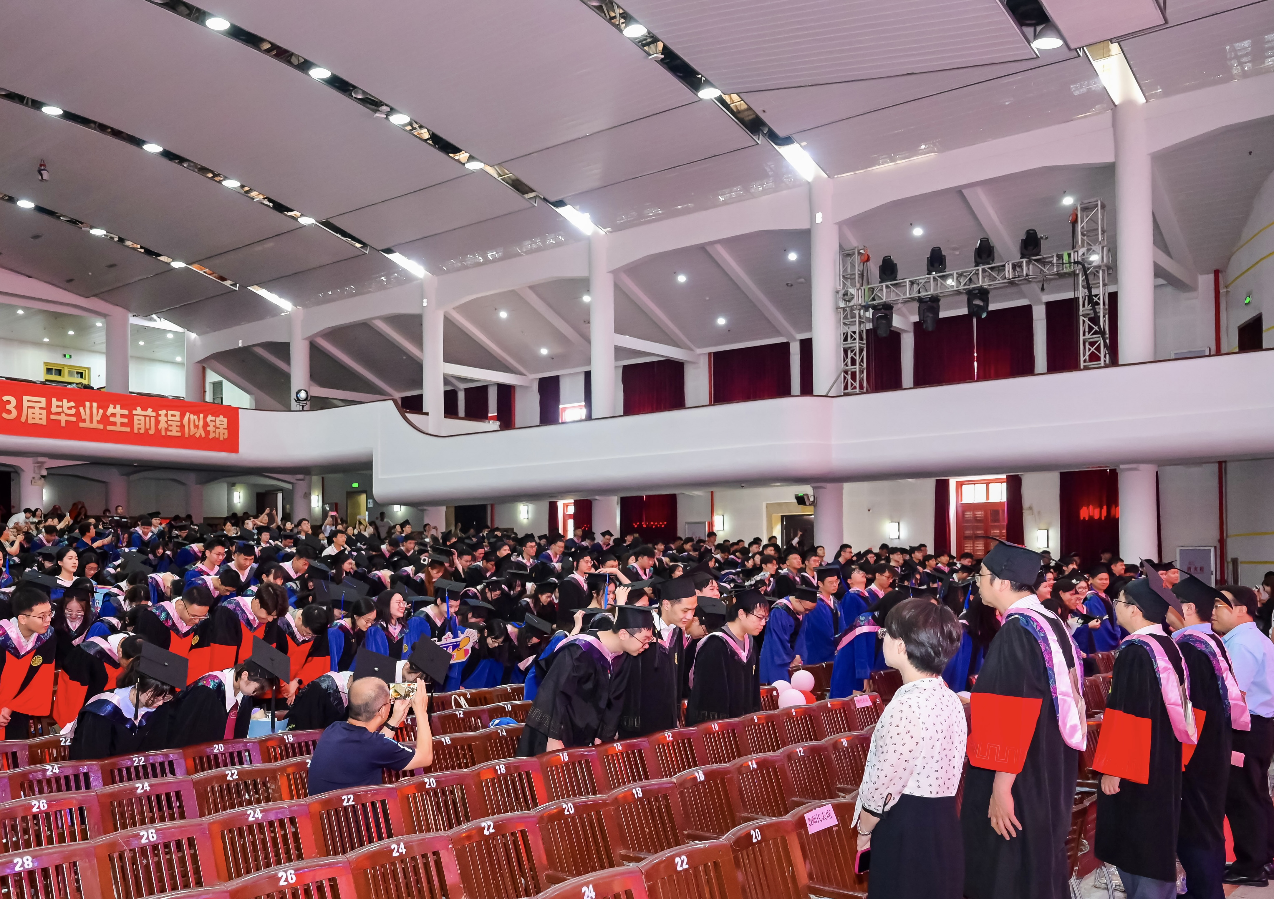典礼最后,所有毕业生踏上了专属红毯,当踏出会堂大门的那一刻,迎接他们的将是更加辉煌的明天。“当代中国青年生逢其时,施展才干的舞台无比广阔,实现梦想的前景无比光明。”祝愿所有毕业生前程似锦、一帆风顺,怀抱着远大理想,勇敢地奔赴下一场山海!