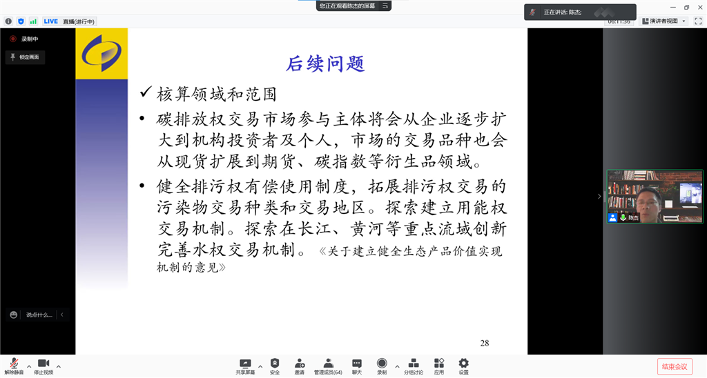 陈杰从碳排放和碳排放权的概念辨析开始引入,简述了碳排放权及其前身排污权的交易市场的发展历史,表示在国际条例的要求与国内中央文件的指导下,碳排放权交易市场正在逐步建立并完善,相应地,对碳排放权的核算事宜也应当与时俱进。