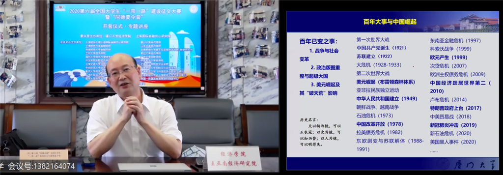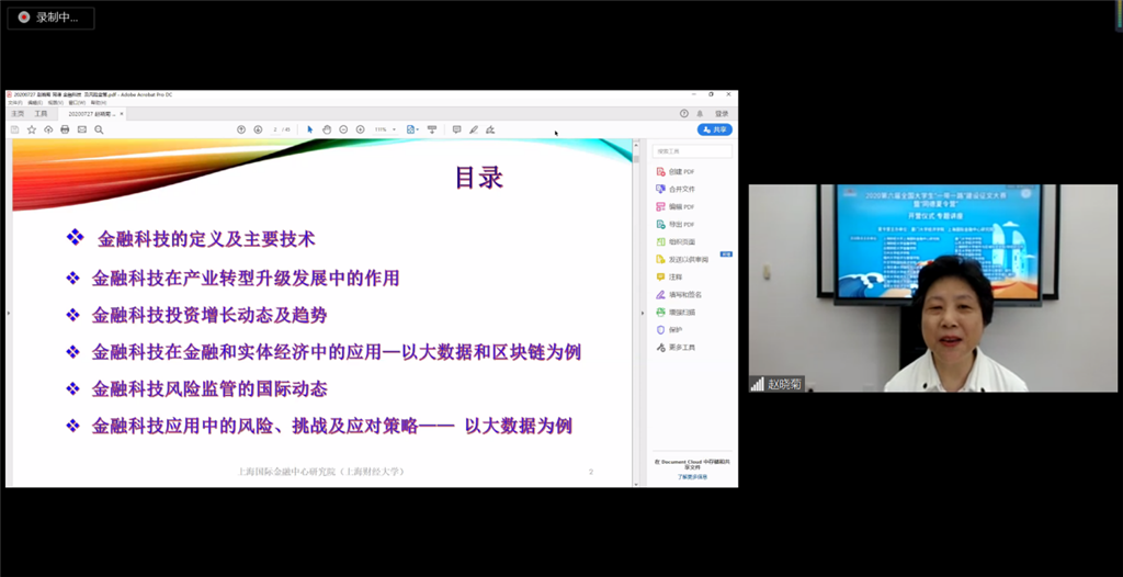 太阳成集团tyc7111cc和上海财经大学上海国际金融中心研究院联合举办的2020第六届全国高校学生“一带一路”建设征文大赛暨“同德夏令营”活动举行,该活动为期四天,于7月27日正式开营。由于受到新冠疫情的冲击,今年夏令营活动首次采用了线上形式举行。