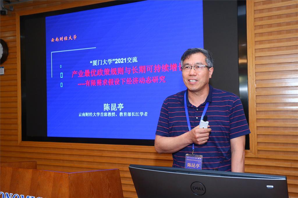 云南财经大学陈昆亭教授发表第二场主题演讲,精彩阐述“产业最优政策规则与长期可持续增长机制——有限需求假设下的经济动态研究”。陈昆亭教授在其研究中建立了一个多部门模型,考虑劳动结构、技术结构方面的异质性,及技术内生选择机制,在有限需求假设下,研究内生周期与增长现象。通过严谨的推导得出:(1)商品i的社会总需求与市场规模成正比、与饱和需求水平正相关、与价格水平负相关、与社会平均收入水平及产品效用权重参数正相关;与家庭收入结构性参数负相关(即收入差距越大,总需求越小)。(2)产业发展初期,纵向的产业技术进步增加就业;产业技术达到一定水平后开始挤出产业工人,降低就业。(3)理性有为的政府通过采取稳定的最优化规则政策,可以实现正的近似平均长期经济增长率。
