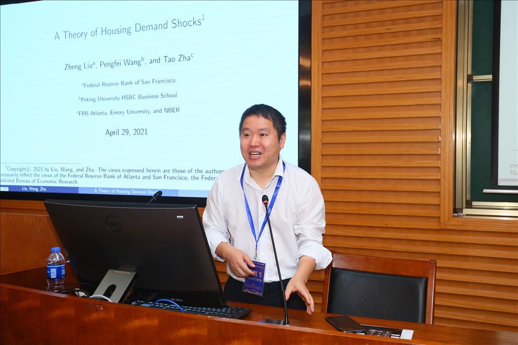 北京大学王鹏飞教授在第三场主题演讲中解读“A Theory of Housing Demand Shocks”。王鹏飞教授通过在传统效用函数中增加一个家庭对住房需求的外生冲击变量,来解释房价的剧烈波动。该研究还通过构建包含异质性家庭的理论模型来解释单个体模型所无法解释的问题,模型中每个家庭成员对未来经济增长的看法不一样,这就导致了他们在购房时愿意支付的价格不一样。此外,模型还假设每期期初家庭会把财富聚集起来,最终推导出价格租金比率的两个决定因素,一方面,边际购房者对未来经济增长率的看法越乐观,价格租金比会越高,另一方面,利率越高时,边际购房者在银行储蓄所获得的收益越高,从而价格越低。王鹏飞认为异质性是解释宏观经济学现象的一个重要维度,同时对于政府政策的制定也具有非常大的意义。