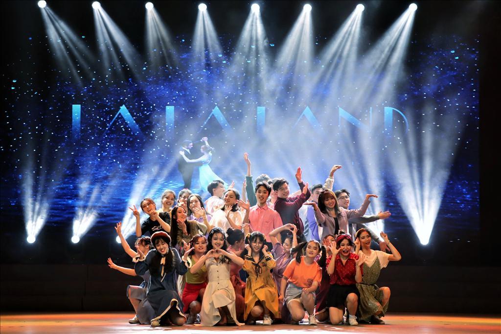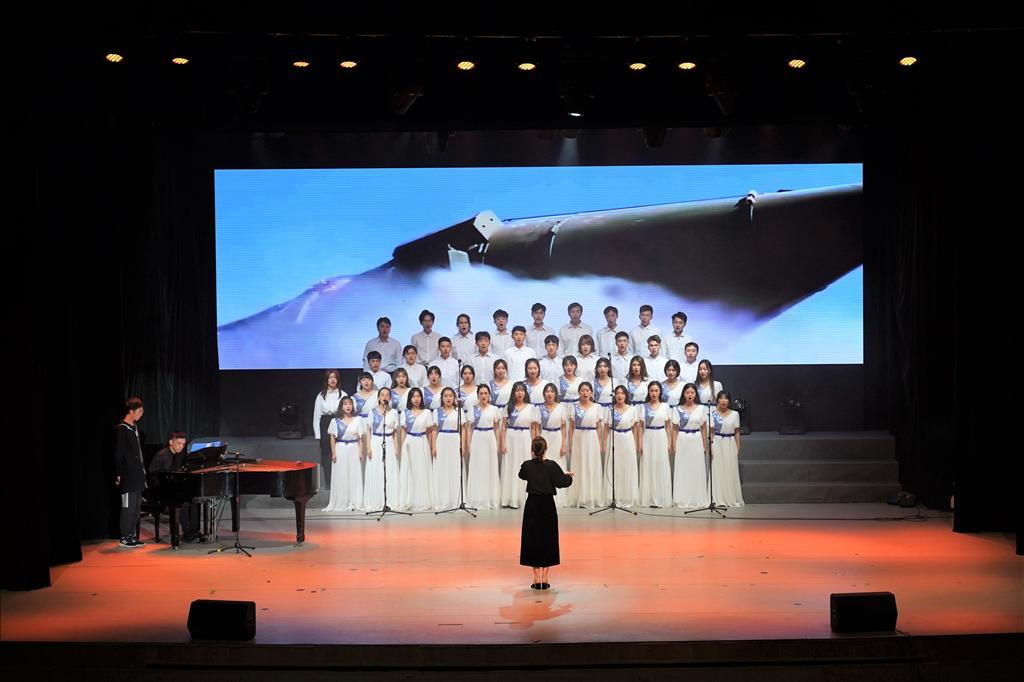 在第三篇章中,合唱军乐《当那一天来临》和舞蹈串烧《梦无限可能》将汇演推向高潮。随后,学院党委副书记周蕾老师、杜海林老师和全体辅导员一起倾情演绎现代舞《呼唤》,舞台犹如画卷一般徐徐展开,既清新自然又恢弘大气,他们将柔情似水和坚韧有力相结合,用真挚的情感呼唤爱与希望,表达了对生命的呵护和对抗疫战士及人民的敬仰。歌曲《一直到黎明》结合经典原创校史剧目《遥望海天月》中的部分片段,致敬疫情中的英雄,歌颂伟大的抗疫精神,寓意黎明即将来临。现场观众在热烈与温情中,感受着激扬的青春与温暖的希望。