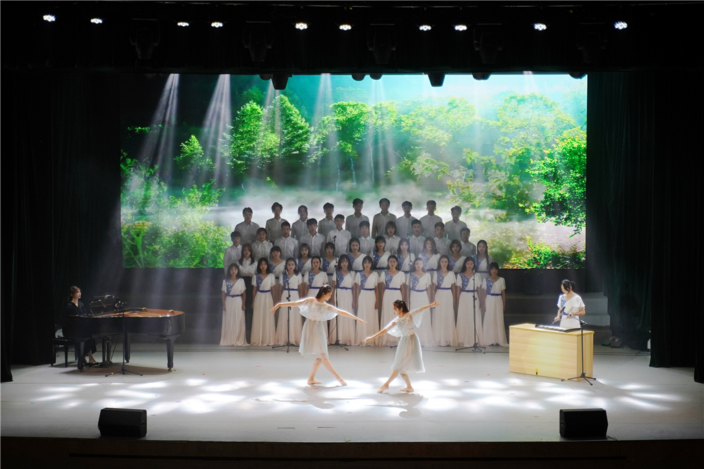第二篇章中,一系列喜闻乐见的经典视听艺术作品在二次创作后轮番上演,如乐器演奏《来日之歌》和歌曲串烧《我想和你唱》。其中,《来日之歌》将著名华语电影《麦兜当当伴我心》的插曲与卡农和西洋乐器相结合,层次丰富多样、旋律悠扬动听,给人似曾相识,又别出心裁的惊喜。除此之外,去年反响热烈的保留节目《联播趣谈》,以新颖独到、贴近生活的形式讲述近阶段的趣人趣事,见微知著,在生活中发现别样的精彩。而走秀节目《红色流影》以时装定格时光,用不同年代的服饰带领全场师生感受时代的缩影。