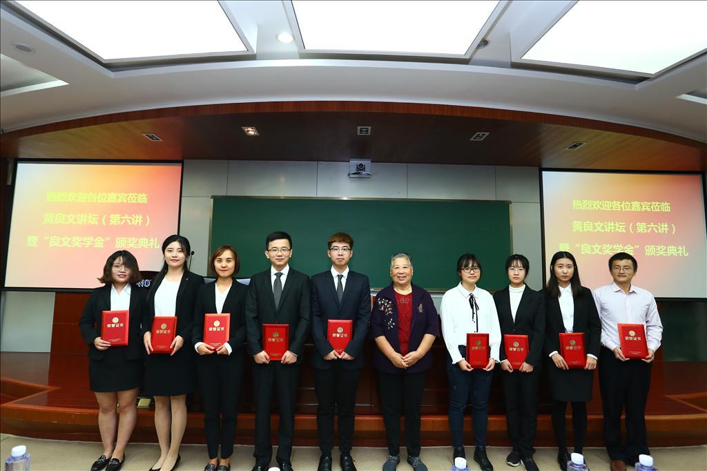 讲坛的第二个议程是“良文奖学金”颁发典礼。与往年不同,此次“良文奖学金”在原有的学业奖学金基础上,首次增设了论文奖学金,陈金菊教授亲自为获奖者一一颁奖,并对获奖同学表达了殷切的希望和真诚的祝福。获奖同学也表示将把黄良文教授的教诲传承和延续到未来的学习和工作之中。
