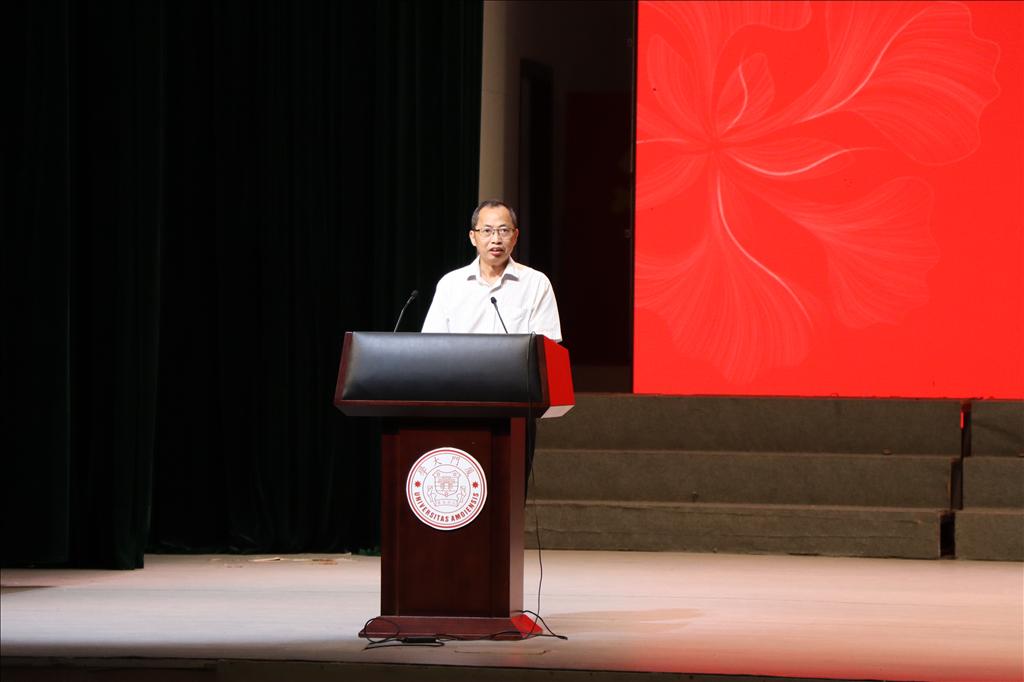 “在大学,我们不只是学习书本知识,更重要的是成为一个更完整的人。”老生代表、王亚南经济研究院2019级本科生楼帅舟分享了两年大学生活体会,将“学会自主学习、学会拥抱孤独、学会承担责任”与新生共勉。号召新生勇于承担时代责任,要追真正的“星”,“以中国人的立场去建设新中国的经济学”。