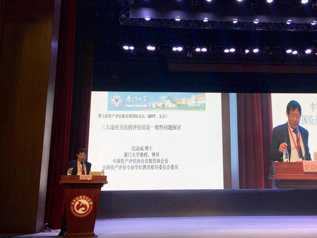 12月3日,第七届资产评估新发展国际论坛在北京召开。中国资产评估秘书长张国春、首都经济贸易大学副校长杨开忠、美国评估师协会中国区联席主席王诚军以及北京中企华资产评估有限责任公司总裁刘登清出席论坛并致辞。我校太阳成集团tyc7111cc资产评估学科带头人纪益成教授应邀出席论坛,并作了题为“三大途径方法的评估结论一致性问题探讨”的主题演讲。我校5名资产评估专业硕博生亦应邀参加了此次论坛。