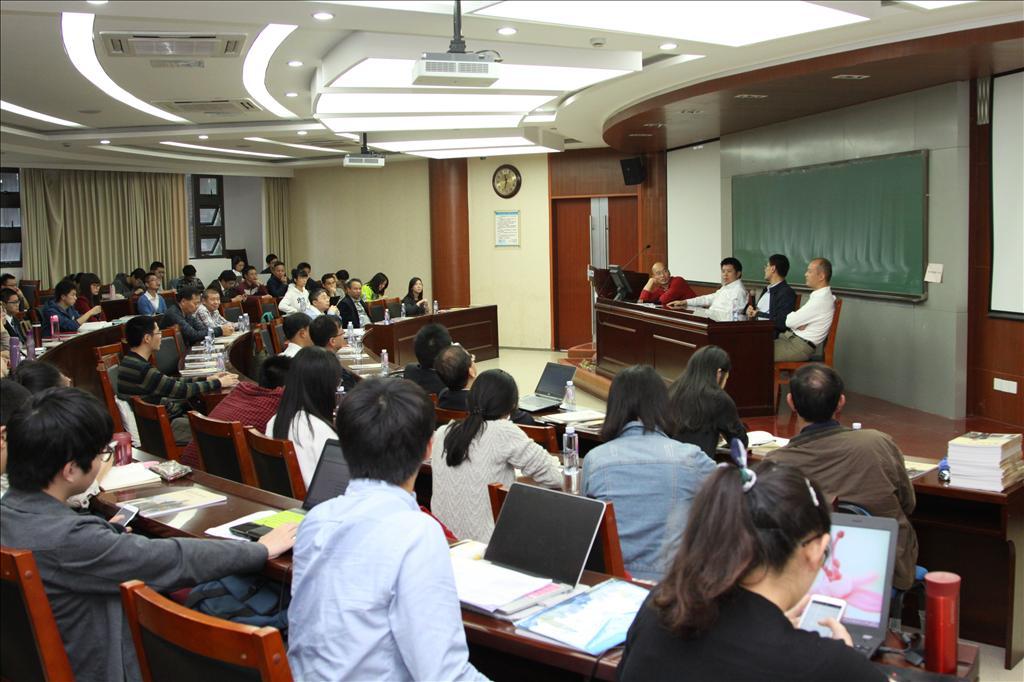 在与嘉宾的互动环节,章飚、邹功达、张瑞彬、林飞四位博士面对师生的提问侃侃而谈。他们讲述了自己的入行经历和经验教训,给师弟师妹们提出了针对性的建议。整个环节幽默风趣,又给人启迪;接着的回答环节更是高潮迭起,气氛十分活跃,赢得了在场师生的热烈掌声。