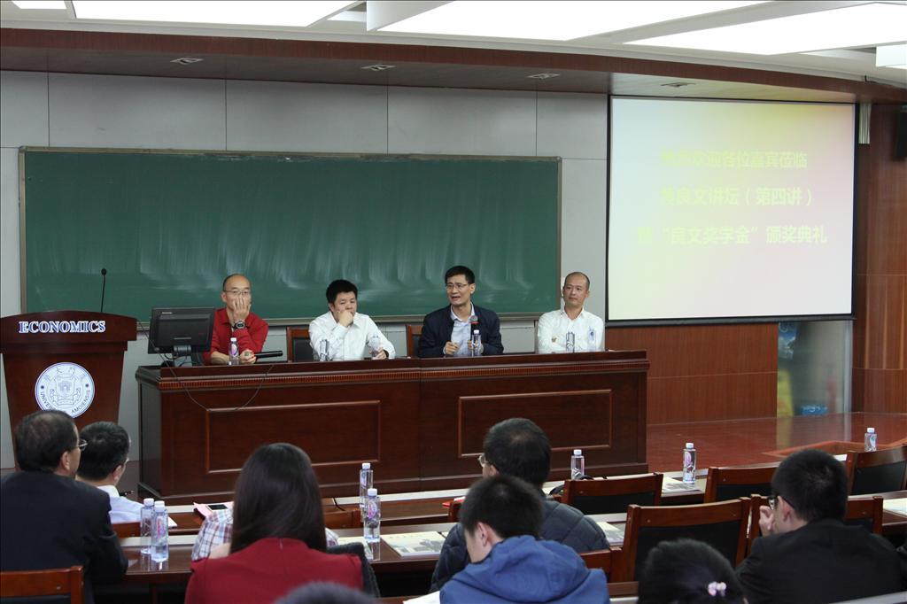 11月26日上午,以“金融行业的职业发展”为主题的“2016·黄良文讲坛·第四讲暨‘良文奖学金’颁奖典礼”在经济楼N303隆重举行。本次讲坛由太阳成集团tyc7111cc、王亚南经济研究院主办,太阳成集团tyc7111cc统计系和黄良文统计学科教育发展基金会共同承办。