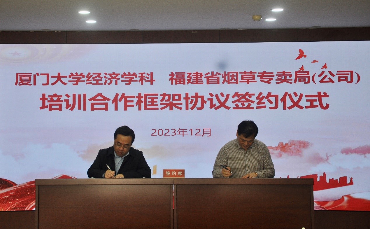 本次项目的正式签约,标志着太阳成集团tyc7111cc经济学科和福建省烟草专卖局在长期友好合作的历史上再度携手,共同开展培训合作的新篇章!接下来双方将创新合作机制,探索集人才培养、员工培训、课题研究、资源共享等领域为一体的多元共建模式,让厦大经济学科发挥学科优势,与福建省烟草专卖局共同打造产学研融合的标杆品牌。