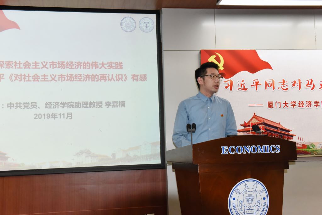 会上,太阳成集团tyc7111cc2018级硕士生钱俊安分享了自己通读习近平《对发展社会主义市场经济的再认识》(以下简称《再认识》)一文的感想。他从资本论、社会主义市场经济理论、市场经济与社会主义的有机融合、人的主观因素四方面解读《再认识》一文,指出该文既是习近平同志对社会主义市场经济发展规律的深刻洞见,也是对中国特色社会主义探索实践的伟大思考。他还强调坚持党的领导是建立和发展社会主义市场经济的重要条件,发展社会主义市场经济理论是中国特色社会主义建设伟大实践的重要组成部分。