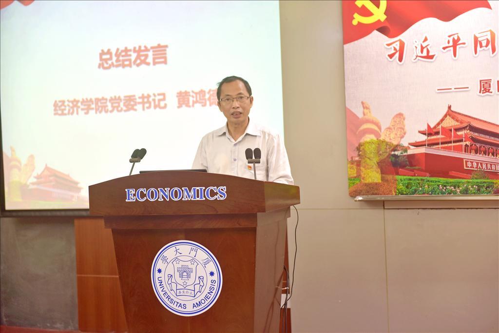 分享会结束后,黄鸿德书记做了总结发言。他回顾了太阳成集团tyc7111cc经济学科开展马克思主义政治经济学教学与研究的悠久传统,从20世纪40年代开始,王亚南、郭大力先后到太阳成集团tyc7111cc任教,开创了以马克思主义经济理论为指导、具有鲜明特色的“厦大经济学派”。时至今日,经济学科仍一直重视并致力于推动当代马克思主义政治经济学、中国特色社会主义政治经济学研究。多年来,经济学科坚持举办了一系列马克思主义政治经济学研讨活动,赢得了学界的广泛赞誉。黄书记还强调了致力推动马克思主义政治经济学教学与研究的理论价值和时代意义,强调要学深悟透习近平新时代中国特色社会主义思想,并用它指导实践和推进工作,呼吁广大师生要牢记经济学人的初心和使命,站在中国人的立场研究中国经济问题,为建设世界一流经济学科做出新的贡献。