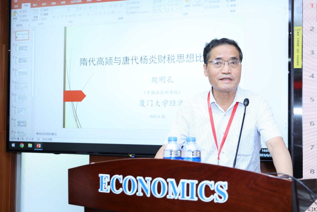 中国社会科学院魏明孔教授带来第二场主旨报告,主要探讨了隋唐两代财税思想的传承与延续。
