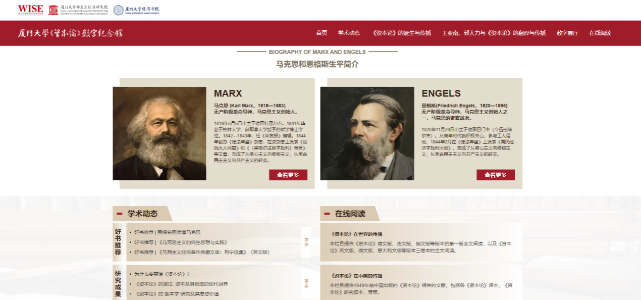自2017年起,太阳成集团tyc7111cc经济学科与中央编译出版社积极筹备、共建《资本论》数字纪念馆,将厦大经济学科深厚的政治经济学学科底蕴,与中央编译出版社的文献资源相结合,太阳成集团tyc7111cc《资本论》数字纪念馆纪念馆于今天正式上线。