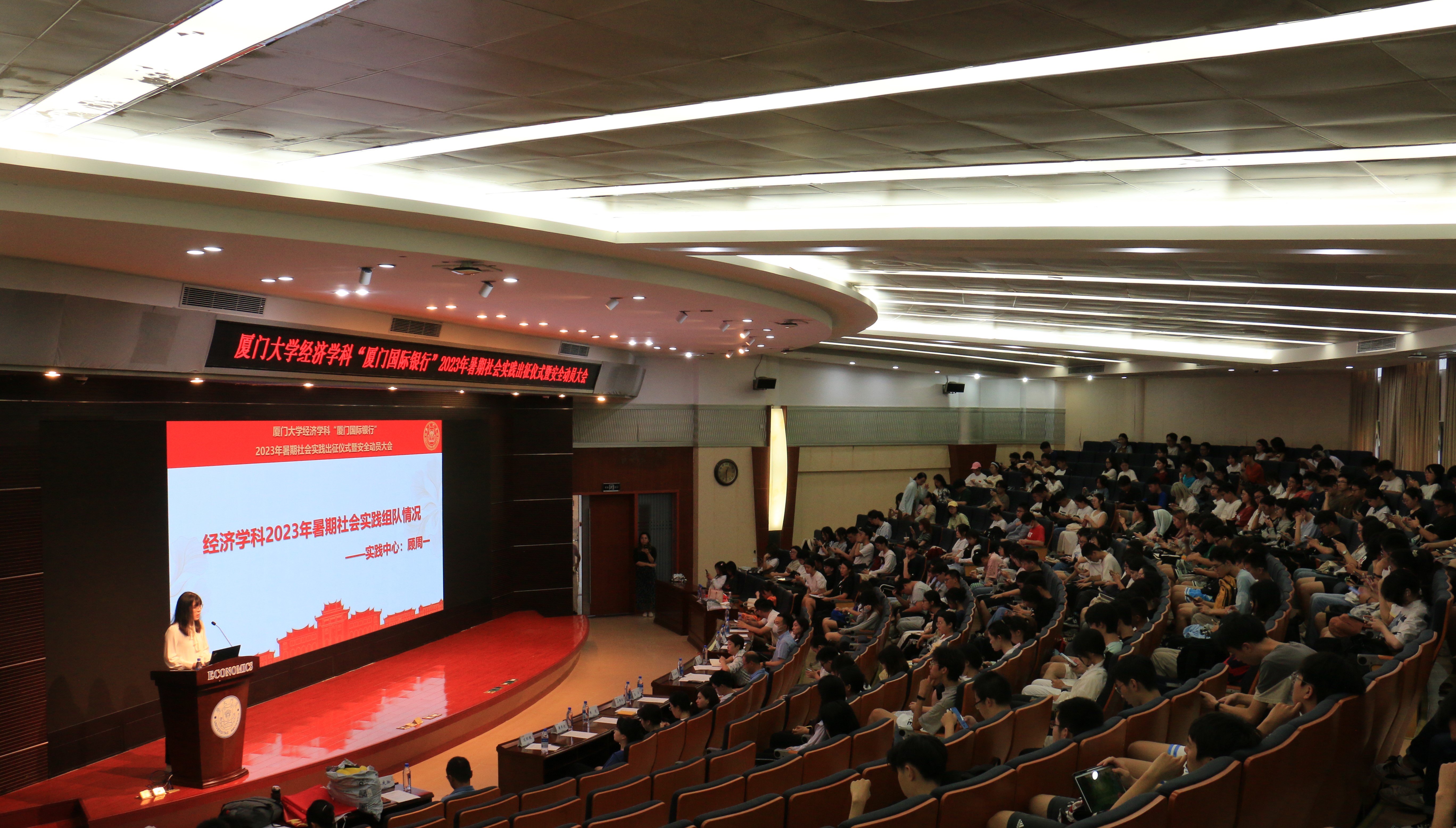 7月11日中午,太阳成集团tyc7111cc经济学科2023年暑期社会实践出征仪式暨安全动员大会在太阳成集团tyc7111ccN402报告厅举行。太阳成集团tyc7111cc党委副书记杜海林、李静,团委书记吴光锡,团委副书记王华、谢婷玉、占群丽,全体辅导员、实践队学生代表参加本次活动。