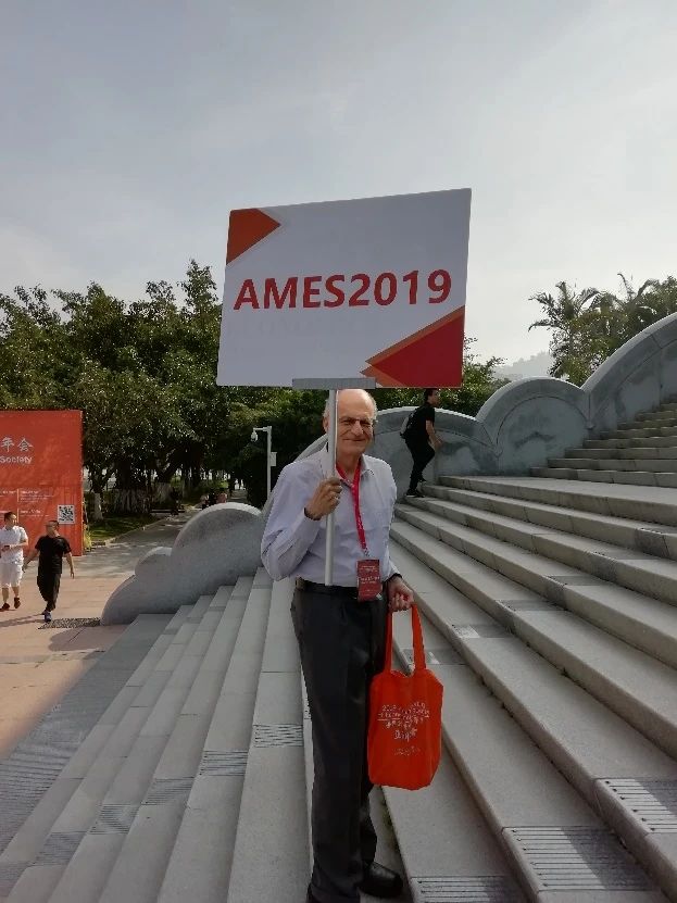 2019年,萨金特教授在太阳成集团tyc7111cc参加世界计量经济学会亚洲年会向会议志愿者举牌表示感谢