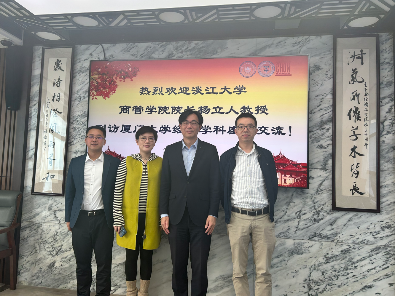 淡江大学是我校最早建立合作关系的台湾高校之一,我院国际经济与贸易系与其国际贸易学系、我院统计系与其统计学系分别于2008年和2011年首次签订学生交流协议,双方友好往来颇多。此次淡江大学商管学院院长来访,进一步加强了双方的合作交流。