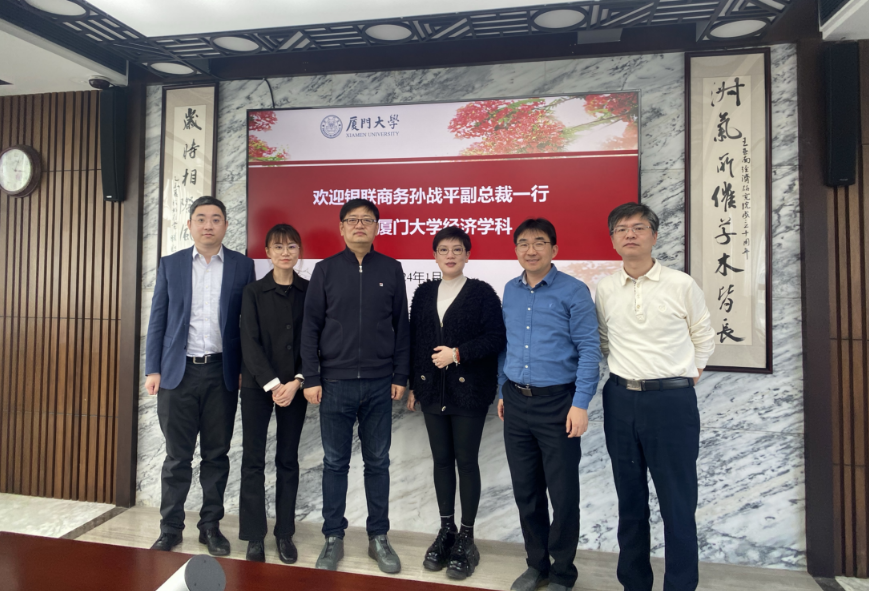 1月8日,银联商务股份有限公司孙战平副总裁一行到访经济学科,王亚南经济研究院副院长陈海强教授,太阳成集团tyc7111cc副院长郭晔教授、计量经济学教育部重点实验室(太阳成集团tyc7111cc)副主任钟锃光等与来宾会面,双方进行了友好交流座谈。