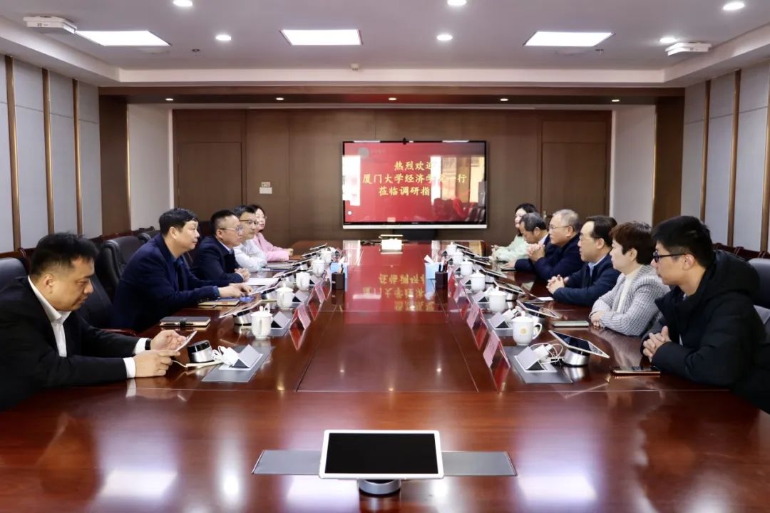当日上午,高忠华一行前往福州市金融控股集团有限公司调研走访。金控集团党委书记、董事长、1991级财金系校友叶发强,集团党委副书记、总经理,2009年能源经济研究中心博士后张群洪等参加座谈,双方就加强人才培养、产学结合、课题研究等方面进行深入交流。