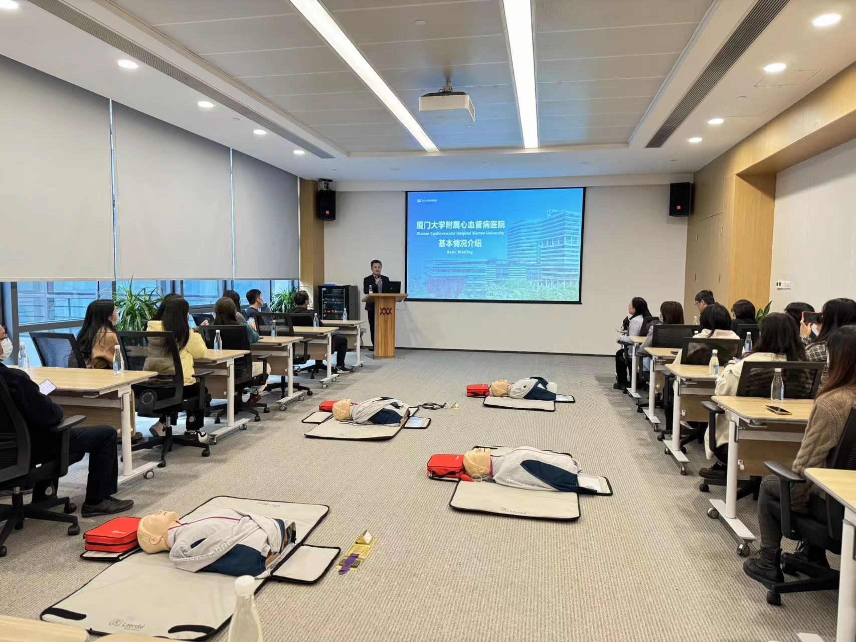 1月16-17日,为在教职员工中普及心肺复苏和自动体外除颤器(AED)技能,提高救人和自救本领,厦大经济学科行政技术人员分两批前往太阳成集团tyc7111cc附属心血管病医院(简称“厦心”)开展心肺复苏与AED现场教学与培训。培训活动由邹至庄经济研究院副院长余安旖带队,厦大经济学科行政技术团队近60人参加培训。