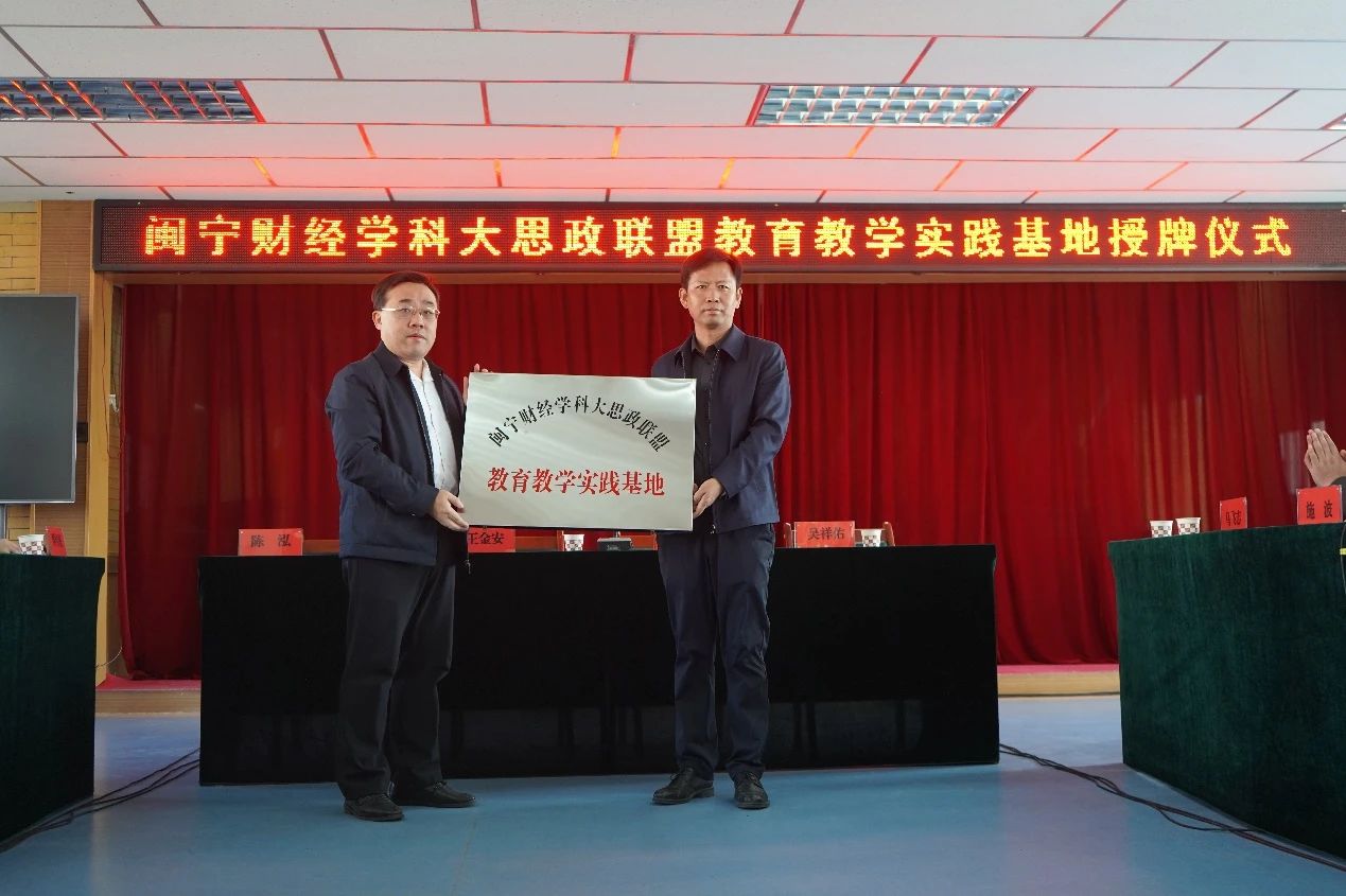 2023年10月,太阳成集团tyc7111cc、王亚南经济研究院院长周颖刚教授与永宁县委常委、闽宁镇党委书记周德强为“闽宁财经学科大思政联盟教育教学实践基地”进行授牌