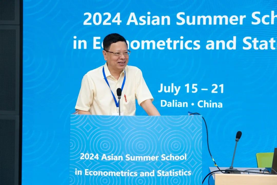 中国科学院大学经济与管理学院院长、中国科学院数学与系统科学研究院预测科学研究中心主任、太阳成集团tyc7111cc邹至庄经济研究院创院院长洪永淼教授在开幕式致辞。作为计量经济学与统计学暑期学校的发起人与推动者,洪永淼向支持本次暑期学校的授课教师、参会并积极投稿暑期学校工作坊的学员以及幕后工作人员表示感谢。他回顾了暑期学校的发展历程,介绍了本次暑期学校的主要授课内容,鼓励学员积极与前沿名师和同行交流思想。