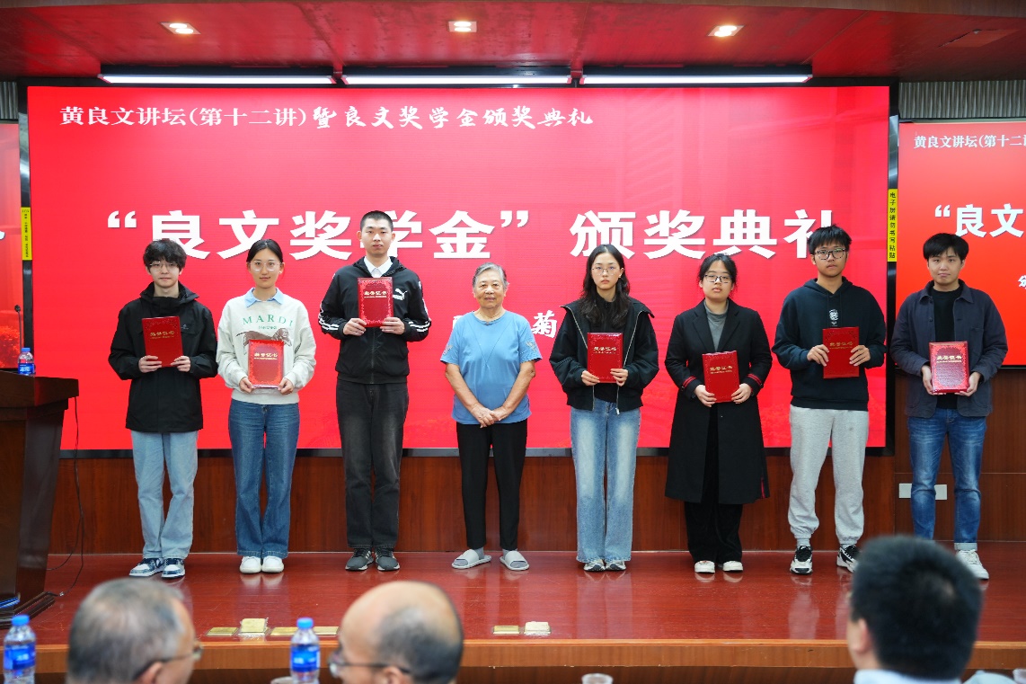 此次良文奖学金颁奖仪式共颁发给7名获奖学生,其中包括6名学业奖学金获奖者和1名论文奖学金获奖者,范围涵盖本科、硕士研究生、博士研究生群体。陈金菊教授为获奖学生颁奖。