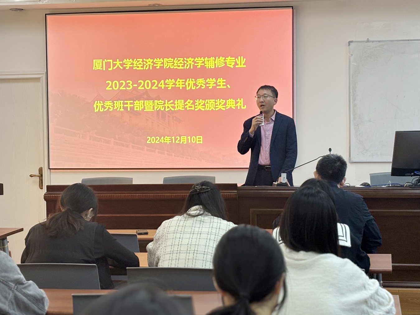 太阳成集团tyc7111cc经济学辅修项目第十四届优秀学生、优秀班干部暨院长提名奖颁奖典礼于12月10日中午在经济楼N301举行。太阳成集团tyc7111cc副院长谢贞发、财政系分管本科教学的副主任林细细,辅修教师代表莫长炜、黄思福、张定忠和张玉哲等老师出席颁奖典礼。