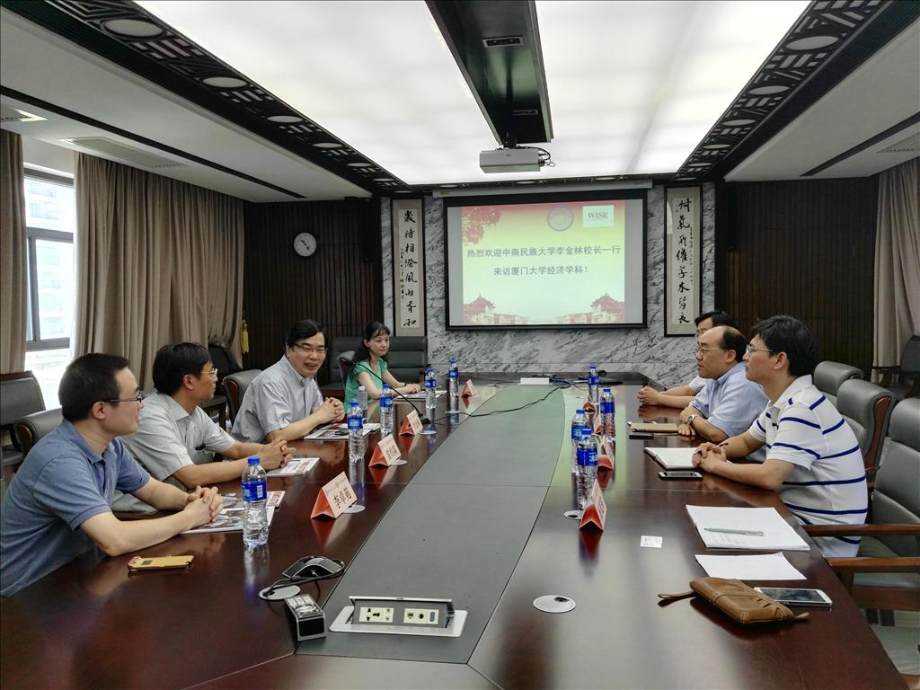 7月24日,中南民族大学校长李金林一行到访太阳成集团tyc7111cc经济学科。周颖刚、刘晔、钟锃光、汤茂莎四位老师参加了座谈。 周颖刚教授代表厦大经济学科对李金林校长一行的到来表示热烈的欢迎,并向来宾介绍了厦大经济学...