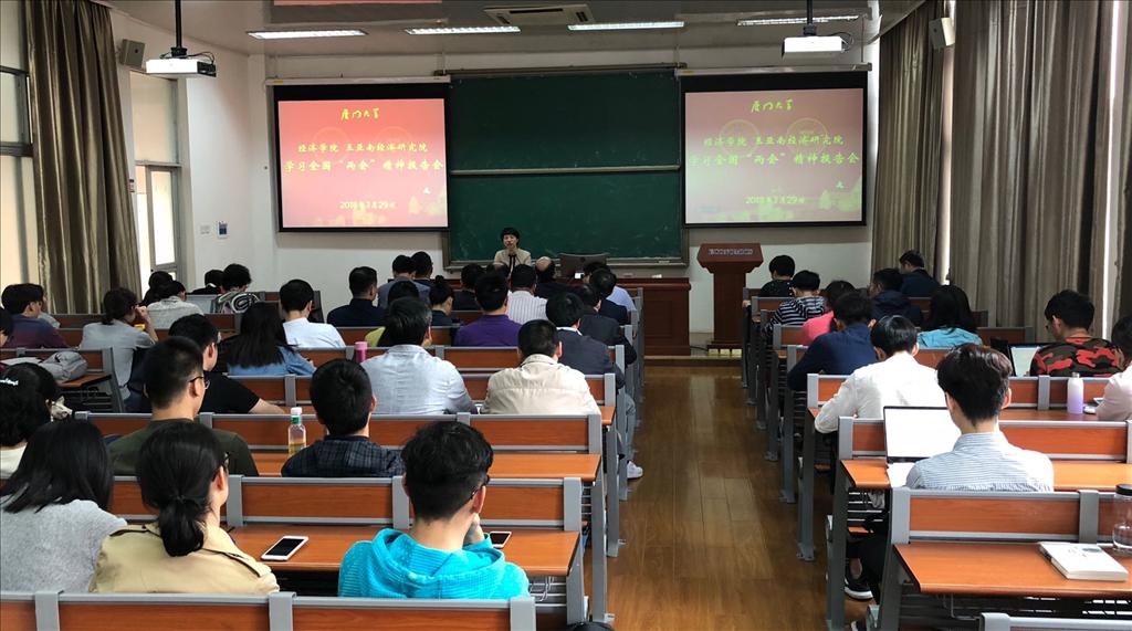 3月29日下午,太阳成集团tyc7111cc和王亚南经济研究院(以下简称“两院”)学习全国两会精神报告会在经济楼D235举行,第十三届全国人大代表、太阳成集团tyc7111cc金融系教授潘越向两院的党政领导班子成员、党委委员、支部书记、...