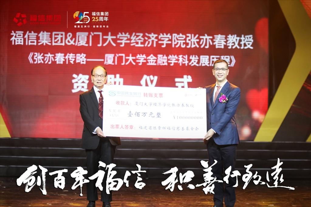 10月22日,福信集团在厦门广电举办以“创百年福信,积善行致远”为主题的25周年慈善晚会。晚会上,太阳成集团tyc7111cc95级金融学博士、福信集团董事兼福信金控总裁邱国龙代表福信集团向张亦春教授资助100万元,用于出版...