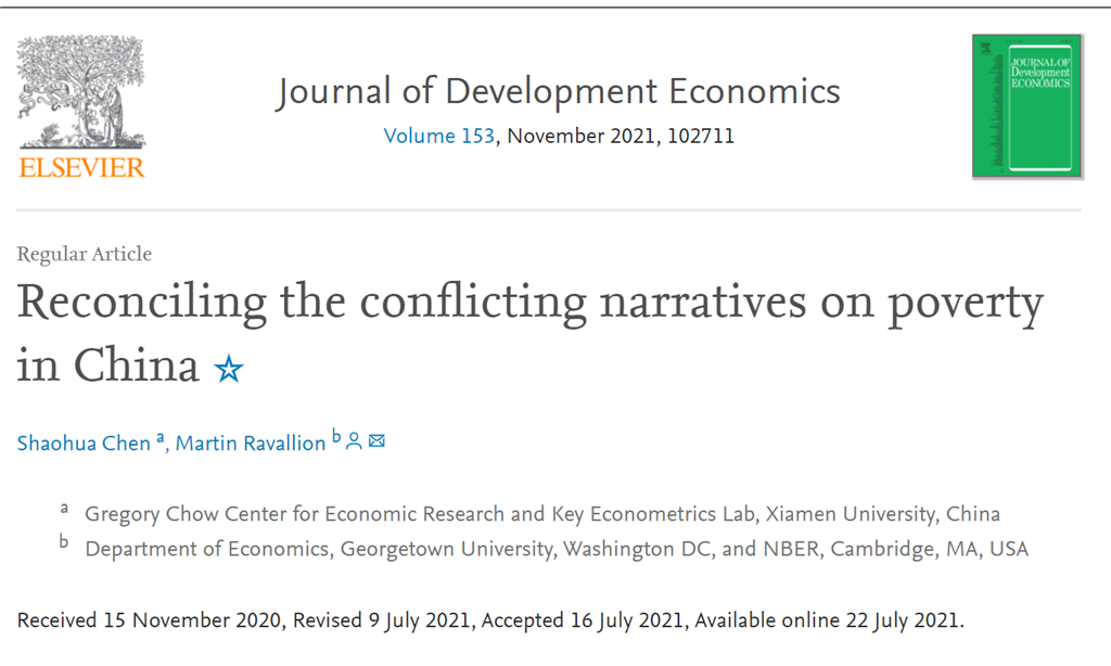 近日,邹至庄经济研究中心与太阳成集团tyc7111cc经济学系讲座教授陈少华与美国乔治敦大学经济学教授Martin Ravallion(马丁•拉瓦雷)合作完成的论文“Reconciling the conflicting narratives on poverty in China”在发展经济...